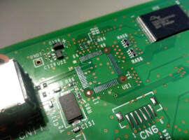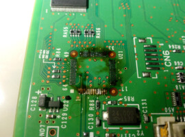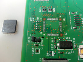 - При визуальном осмотре платы под микроскопом не было замечено никаких видимых причин и под подозрение сразу попал 64-ногий периферийный чип-контроллер в который прямиком и «заходит» усб гнездо, после нескольких дней ожидания пришел новенький чип для замены.